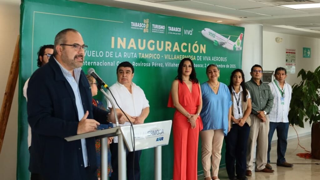 El Gobierno de Tabasco, junto con Viva Aerobus, puso en marcha la nueva ruta aérea directa Villahermosa–Tampico, fortaleciendo la conectividad del estado y ampliando las opciones de viaje para turismo y negocios. El vuelo inaugural llegó con 109 pasajeros y salió lleno hacia Tamaulipas con 125.