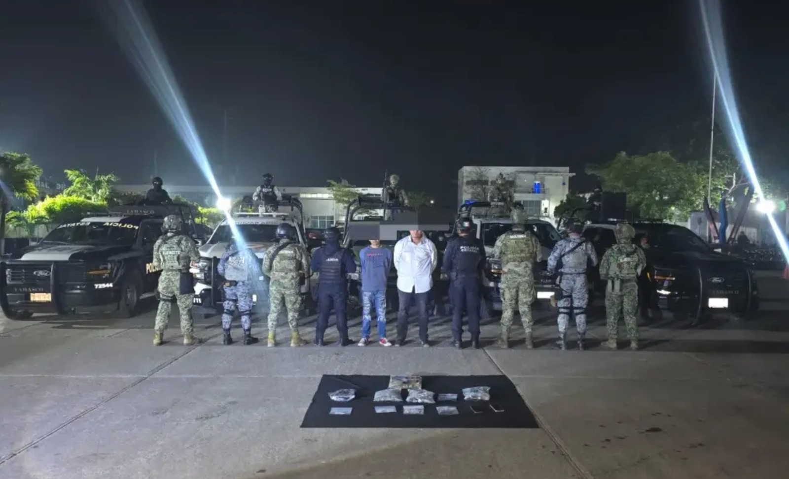 Como resultado de los recorridos de vigilancia del Plan de Contención del Delito, fuerzas de seguridad detuvieron a dos personas en la colonia Casa Blanca, municipio de Centro, por su presunta participación en delitos contra la salud y portación de arma de fuego. El operativo fue coordinado por la Fuerza Interinstitucional de Reacción Táctica Olmeca.