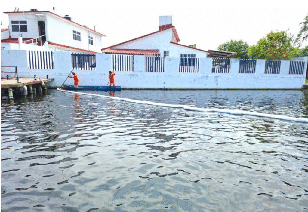 Petróleos Mexicanos reportó la recuperación de 549 metros cúbicos de petróleo en la zona de Dos Bocas, Tabasco, como parte de las acciones de contención realizadas tras un incidente en el área de Río Seco.