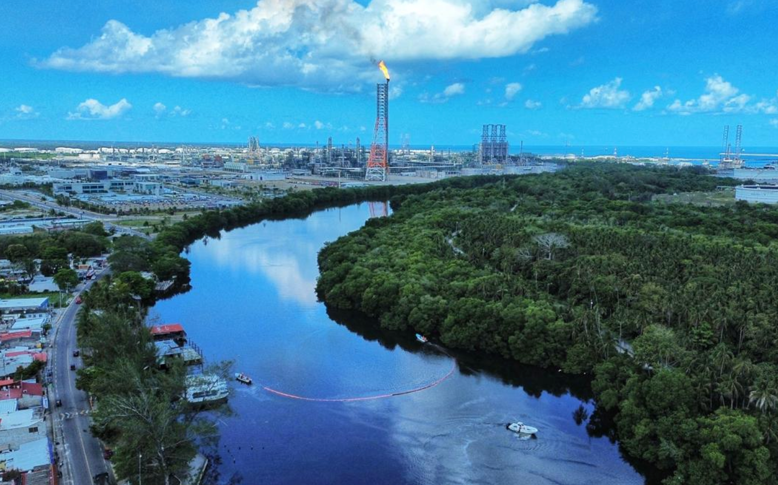 Pemex aseguró que el evento está controlado, se originó por condiciones climatológicas extraordinarias y no está vinculado a la operación de la refinería Olmeca.