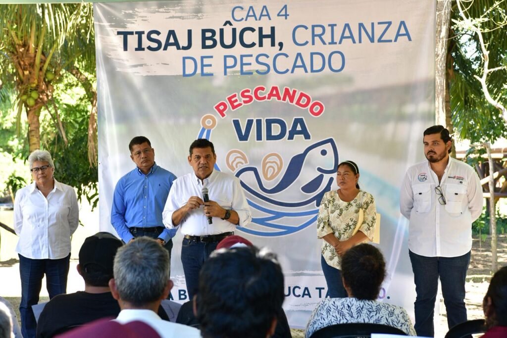 Durante un recorrido de supervisión en la Comunidad de Aprendizaje Acuícola “Tisaj Buch”, ubicada en la ranchería Belén de Nacajuca, el gobernador Javier May Rodríguez anunció que en marzo se obtendrá la primera cosecha del programa Pescando Vida en este municipio. Señaló que al final del sexenio esta estrategia social beneficiará a 10 mil familias tabasqueñas y alcanzará una producción anual estimada de 20 mil toneladas de mojarra.