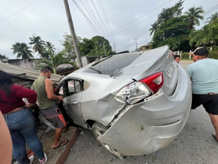 Un aparatoso accidente ocurrió sobre la carretera Paraíso-Comalcalco, a la altura de la ranchería Moctezuma primera sección, cuando una mujer que conducía a exceso de velocidad perdió el control de su automóvil y terminó impactándose contra una pozolería de láminas. El choque provocó daños de consideración en el establecimiento, generando alarma entre los vecinos. Afortunadamente, no hubo personas lesionadas. La conductora logró salir por su propio pie, aunque con apoyo de testigos, mientras su vehículo resultó severamente afectado en la parte delantera.