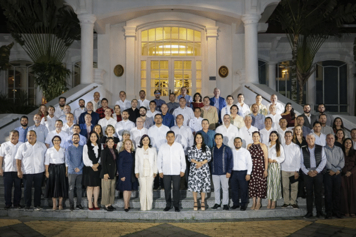 Durante el encuentro, el mandatario estatal estuvo acompañado por integrantes de su gabinete, con quienes explicó los alcances del proyecto, enfocado en transformar la capital tabasqueña y detonar el crecimiento económico mediante obras de infraestructura y modernización urbana. La presentación buscó generar confianza e incentivar la participación del sector privado en la ejecución y consolidación del plan.