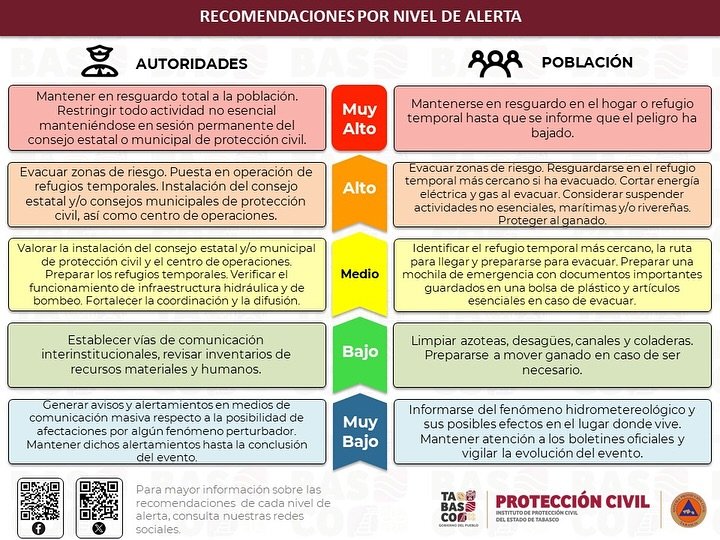 El IPCET recomendó a la población evitar cruzar ríos crecidos, mantenerse alerta ante cualquier cambio en las condiciones del clima y seguir los reportes emitidos por las autoridades estatales a través de sus canales oficiales para prevenir riesgos.