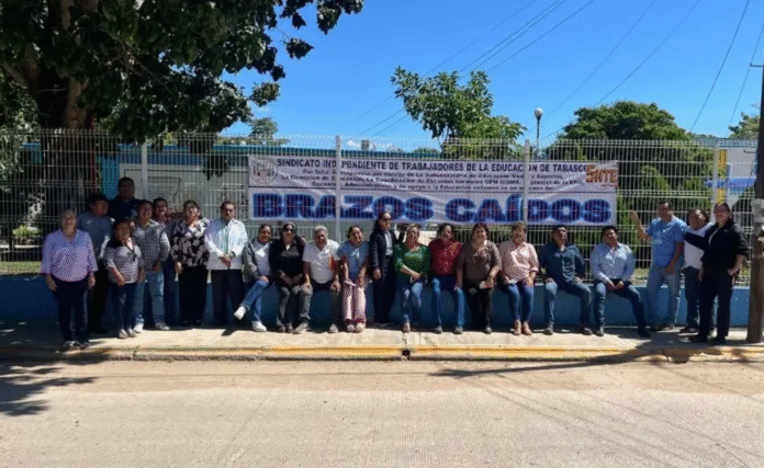 Personal docente, administrativo y de apoyo a la educación de la Escuela Normal Urbana de Balancán mantiene una manifestación de brazos caídos para denunciar diversas irregularidades al interior de la institución. Entre las principales quejas se encuentran presunto hostigamiento laboral, discriminación, trato inequitativo y falta de transparencia en el manejo de proyectos educativos financiados con recursos federales.