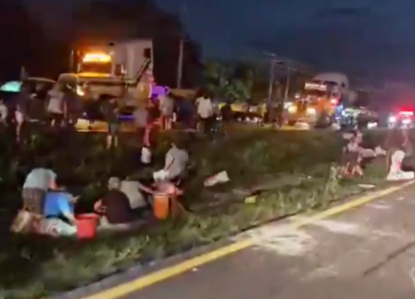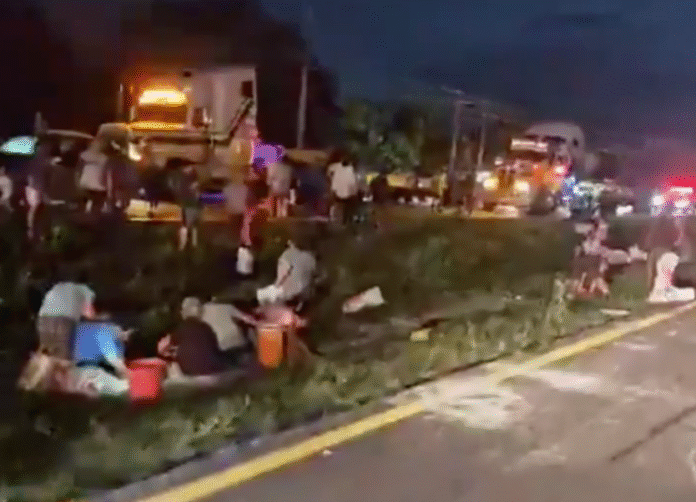 Tras el percance, la carga quedó dispersa en el camellón central y la carpeta asfáltica, lo que provocó que decenas de personas se acercaran para llevarse el producto en costales, cubetas, motocicletas y vehículos particulares.