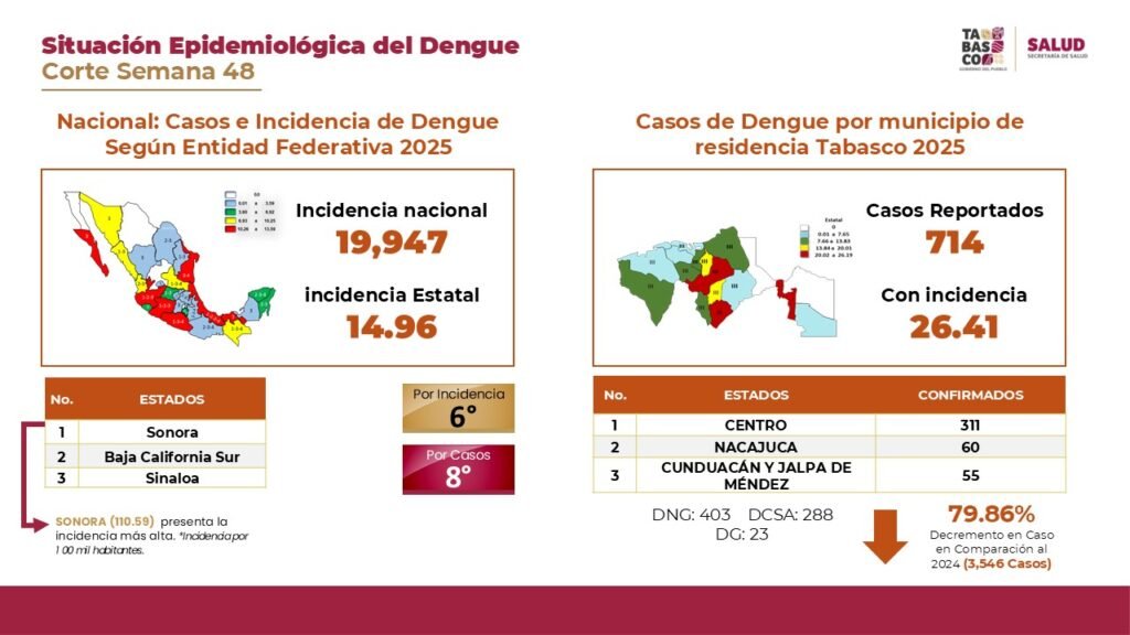 El secretario de Salud, Alejandro Calderón Alipi, informó una reducción del 79% en la incidencia de dengue, al registrarse 714 casos frente a los más de 3,500 del año pasado. Destacó acciones como control larvario, rociado de viviendas, eliminación de criaderos y recolección de miles de toneladas de cacharros.