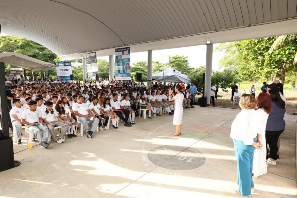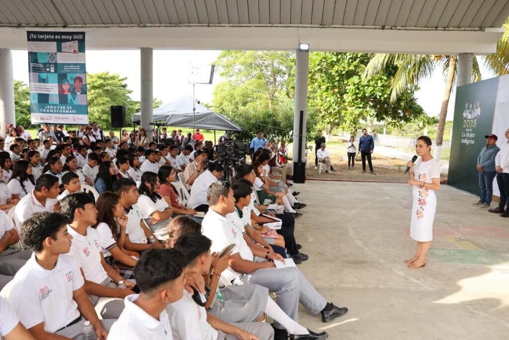 Durante el evento, Sheinbaum encabezó la primera entrega del año de tarjetas de la beca Benito Juárez para preparatoria, que en Tabasco beneficia a más de 100 mil jóvenes. También confirmó que la beca Rita Cetina se ampliará a más de 140 mil alumnos de primaria, sumándose a los 122 mil de secundaria ya beneficiados.