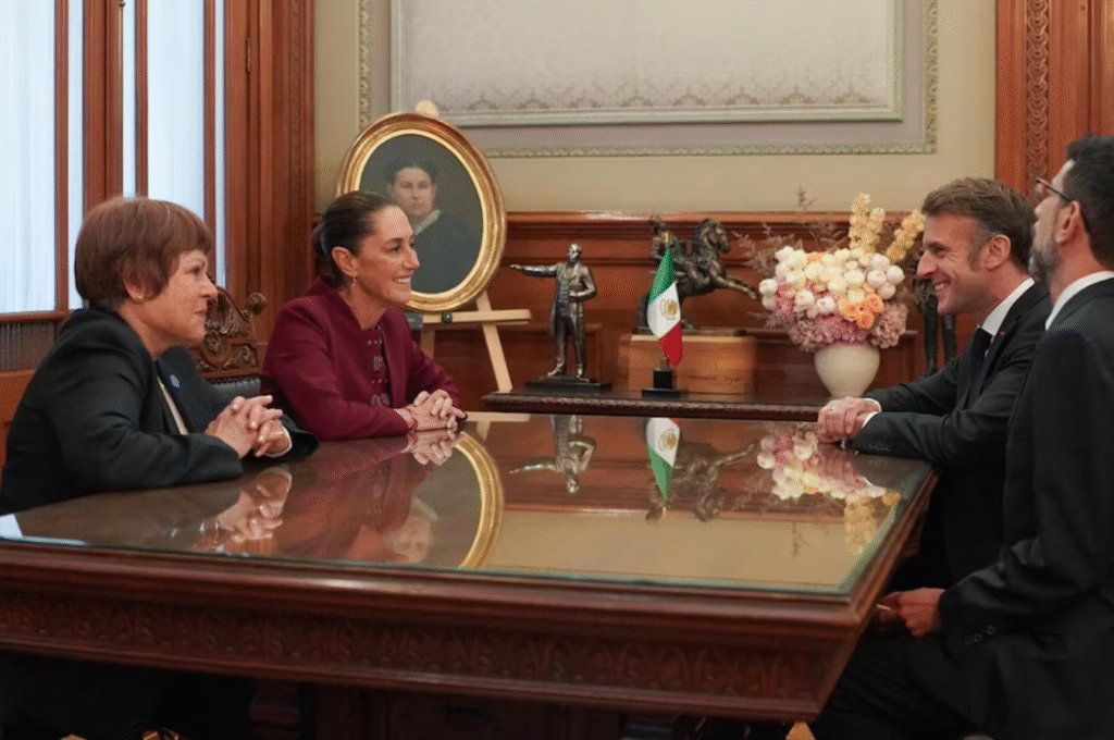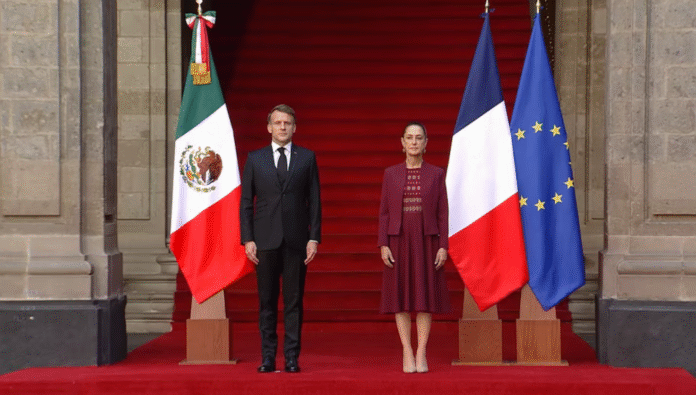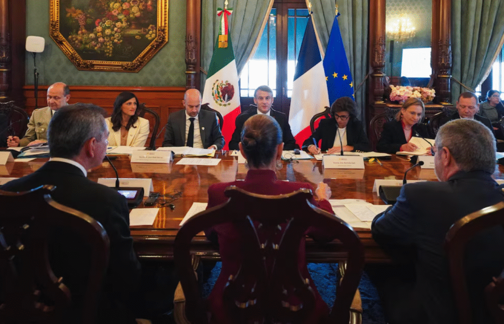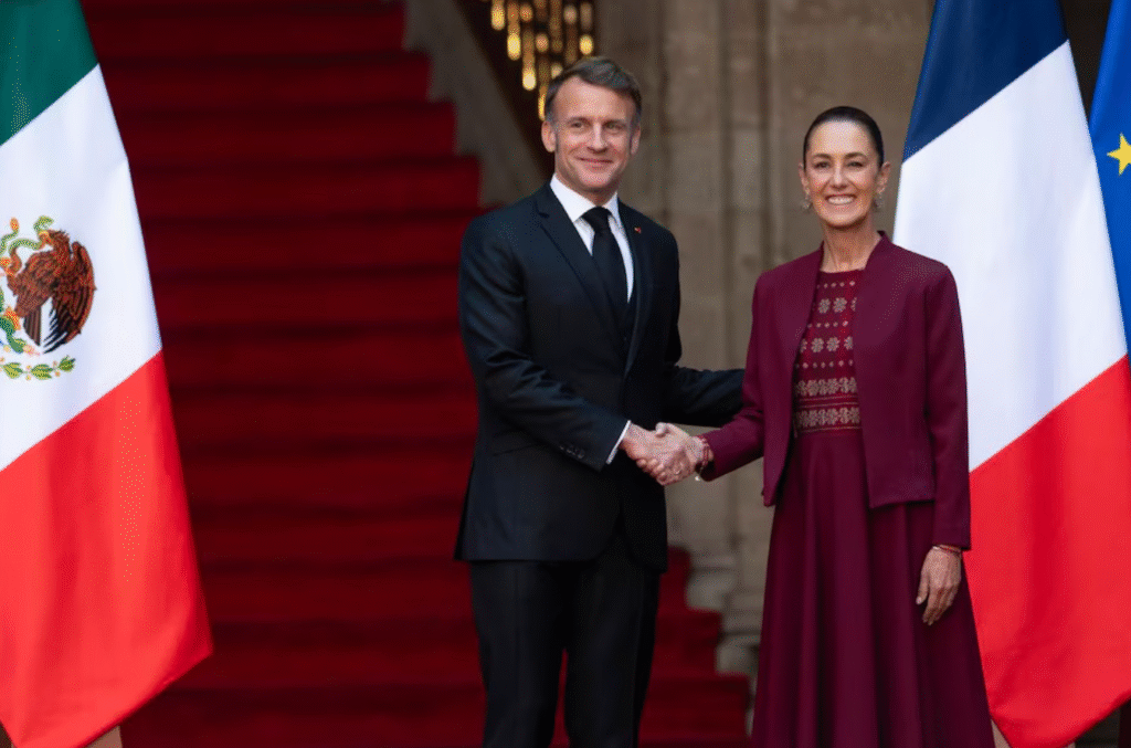 La presidenta Claudia Sheinbaum dio la bienvenida a su homólogo francés, Emmanuel Macron, en Palacio Nacional para una serie de encuentros clave destinados a fortalecer la cooperación bilateral. Tras la ceremonia de bienvenida, la agenda se centró en tres reuniones: una privada entre los líderes, otra con los gabinetes completos de ambos países, y un encuentro con el sector empresarial.