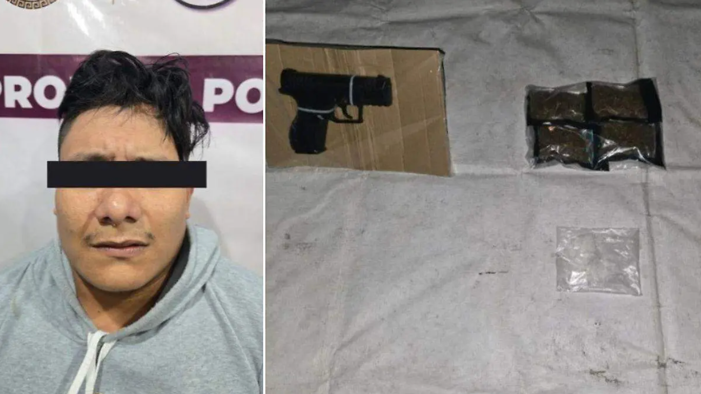 La captura se realizó en el municipio de Centro como parte de la Estrategia Antiextorsión y del Plan de Contención del Delito, acciones enfocadas a debilitar a grupos dedicados al narcomenudeo en la entidad. Durante la intervención, los agentes aseguraron una pistola réplica calibre 5 mm, diversas bolsitas con hierba seca con características similares a la marihuana, así como una sustancia granulada blanca identificada como metanfetamina tipo cristal. Además, se decomisó dinero en efectivo y una mariconera.