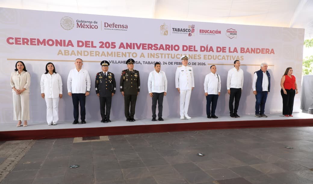 El Gobierno de Tabasco participó en la conmemoración nacional del Día de la Bandera con el abanderamiento de 33 escuelas de nivel básico y medio superior, durante una ceremonia realizada en la Plaza de Armas de Villahermosa. El acto fue encabezado por el gobernador Javier May Rodríguez, quien resaltó que la bandera representa memoria, identidad y el destino compartido del pueblo mexicano.