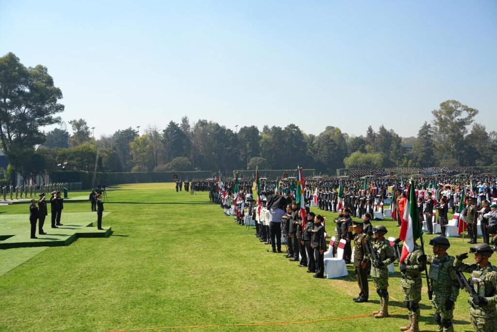 La ceremonia se enlazó de manera virtual con el evento nacional encabezado por la presidenta Claudia Sheinbaum Pardo, desde Campo Marte, donde se tomó protesta a mil escoltas de escuelas secundarias y de educación media superior del país.