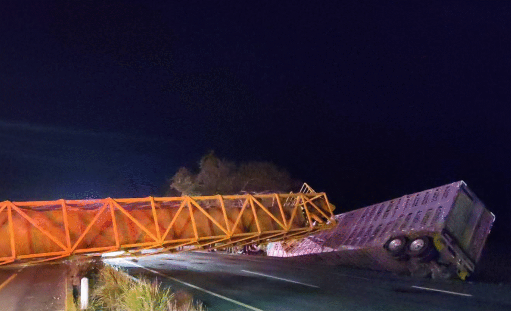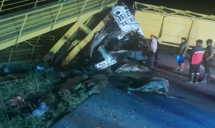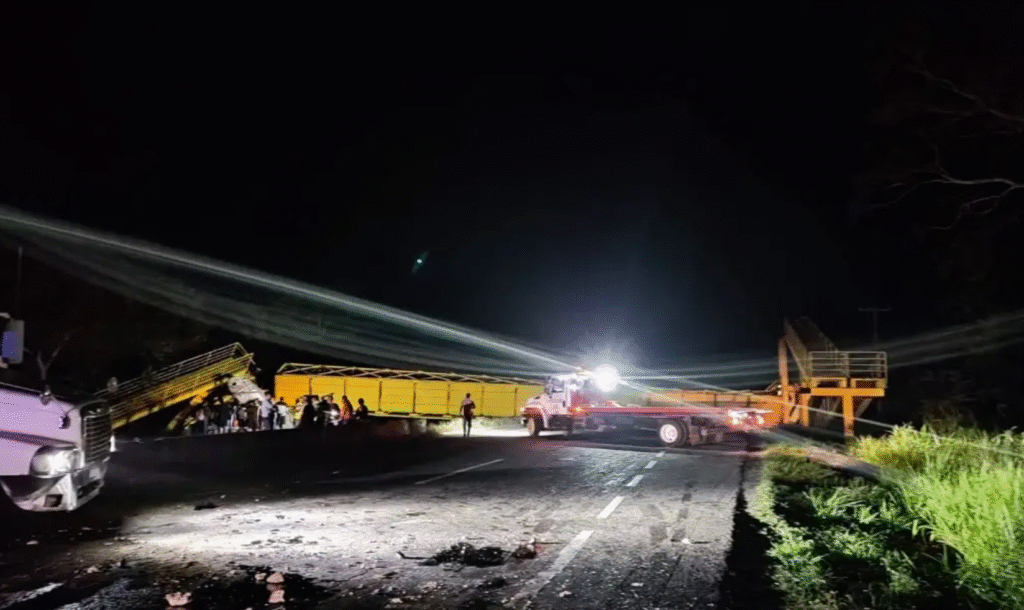 Durante la madrugada de este jueves, un tráiler cargado con ganado derrapó y se impactó contra un puente peatonal en la carretera Villahermosa–Macuspana, a la altura de la ranchería El Portón. El choque fue tan fuerte que la estructura colapsó, bloqueando la vialidad y generando un severo congestionamiento vehicular.