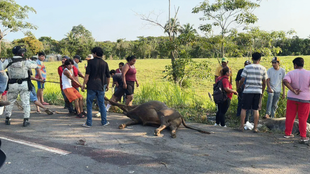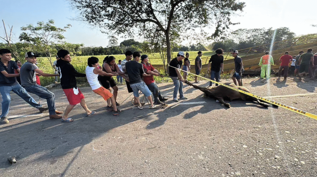 Tras el accidente, varias reses quedaron sueltas sobre la carretera, lo que fue aprovechado por pobladores de comunidades cercanas, quienes incurrieron en actos de rapiña, llevándose animales vivos y destazando otros en el lugar. En redes sociales circularon videos donde se observa a personas retirando los aretes de identificación del ganado.