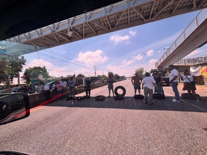 Vecinos cansados del apagón: bloquean la Villahermosa–Teapa hasta que regrese la luz.
