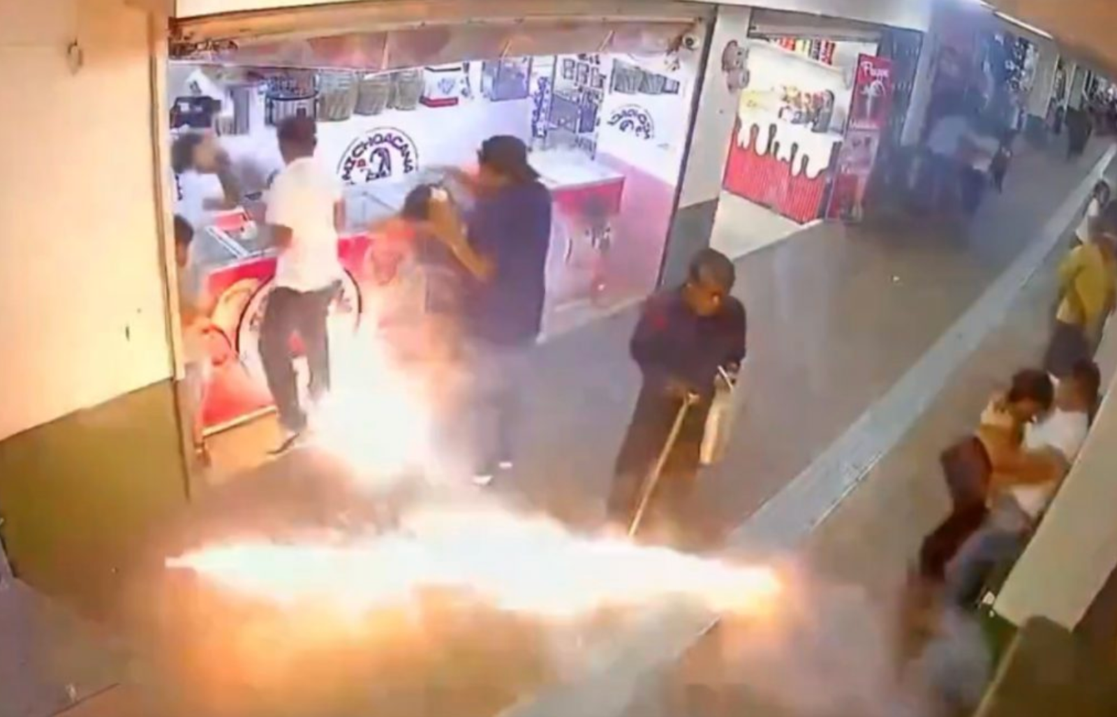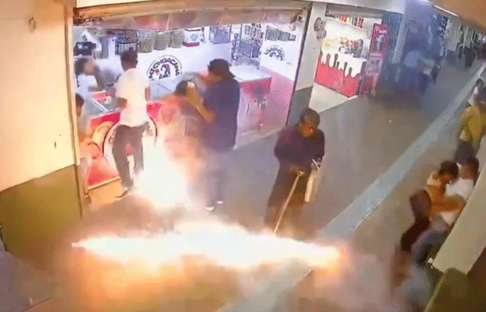 El hecho se registró en las inmediaciones de los portales, cerca del Palacio Municipal, donde algunos comercios tuvieron que cerrar de inmediato ante el riesgo. En las imágenes se observa humo denso, destellos intensos y personas corriendo en busca de refugio.