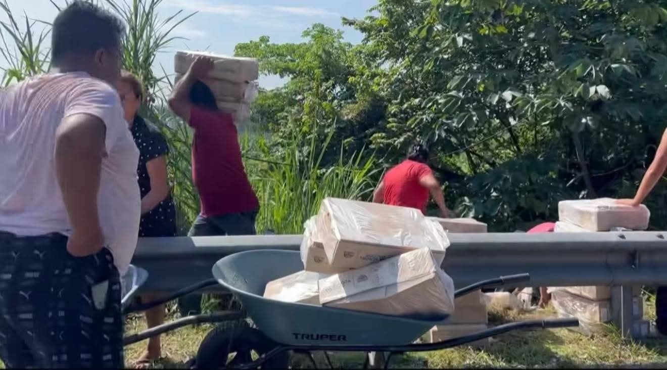 Un tráiler que transportaba pollo congelado volcó este lunes sobre la carretera federal Cárdenas–Villahermosa, a la altura del Puente Samaria, generando un fuerte tráfico vehicular. El accidente fue aprovechado por decenas de habitantes de comunidades cercanas, quienes saquearon la carga del vehículo antes de que las autoridades arribaran al lugar. A pesar del esfuerzo policial para controlar la situación y liberar la vía, la carga ya había sido rapiñada y no se pudo recuperar. Hasta el momento, se desconocen las causas del percance y el estado de salud del conductor. Este caso se suma a otros incidentes similares en la región, evidenciando problemas de seguridad y orden público.